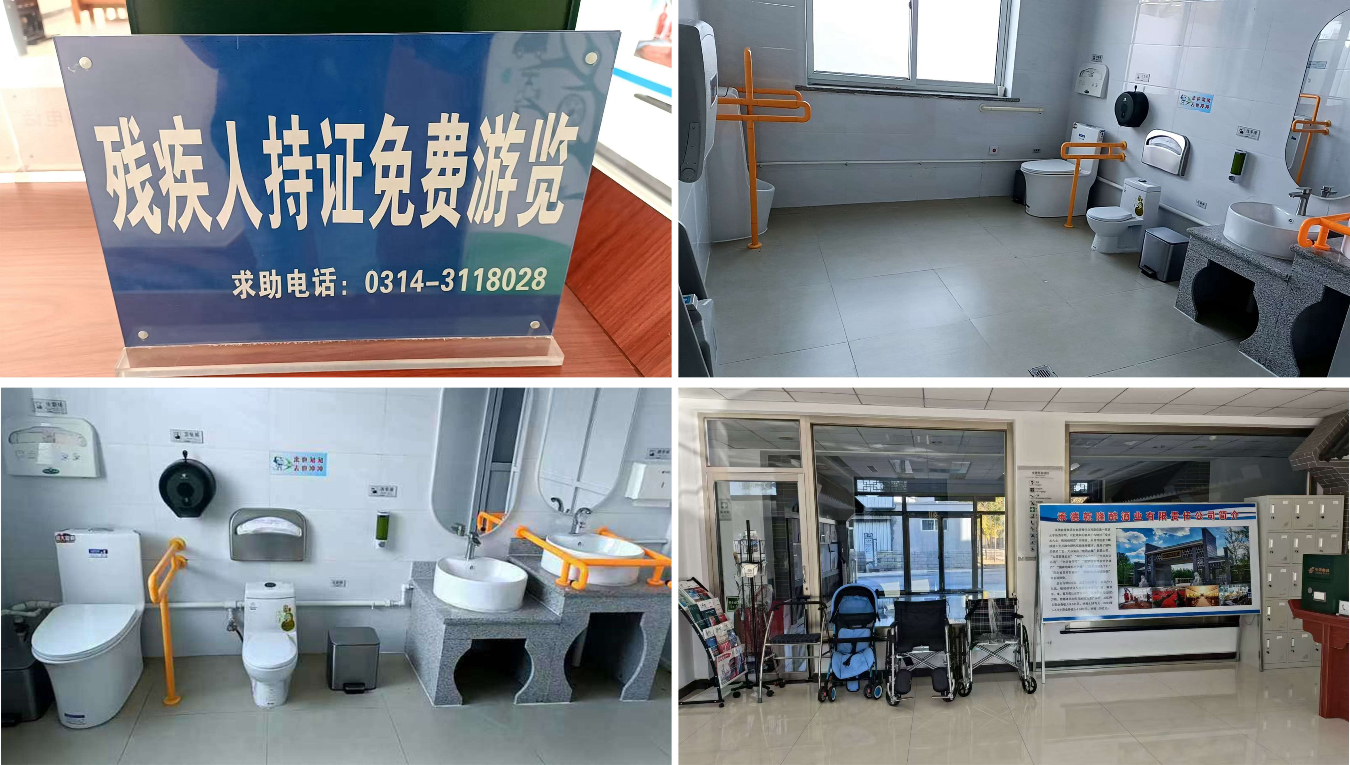 板城酒博園自創(chuàng)建之初,就按照A級景區(qū)標準來打造,充分考慮殘疾人保障政策的落實。在游客中心,設立殘疾人免費公告牌,并安排專人負責陪同和照顧;游客中心設置了殘疾人無障礙衛(wèi)生間、洗漱池、防滑地板等,免費為行動不便人群提供輪椅、拐杖等,使殘疾人也能享受到平等的參觀瀏覽待遇。
