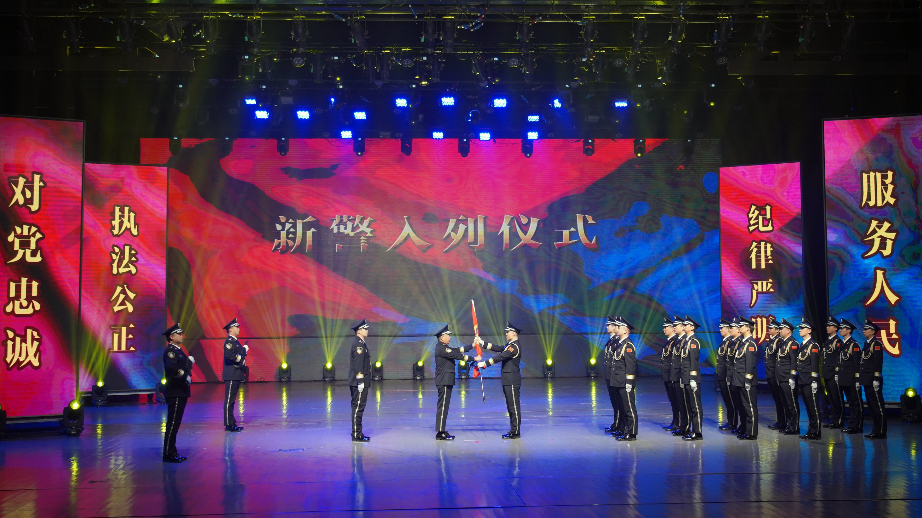 獵獵警旗映初心,金色盾牌展風(fēng)采。整場文藝匯報演出分為忠誠篇、榮耀篇、奮進(jìn)篇三部分,每個篇章以情景短視頻+我做的群眾最滿意的一件事事跡報告+文藝演出的形式進(jìn)行,一件件事跡報告與文藝演出彰顯了公安名警服務(wù)人民、打擊犯罪的忠誠付出與使命擔(dān)當(dāng),節(jié)目以不同形式展示承德公安舍小家、顧大家,恪盡職守、服務(wù)群眾的初心使命。