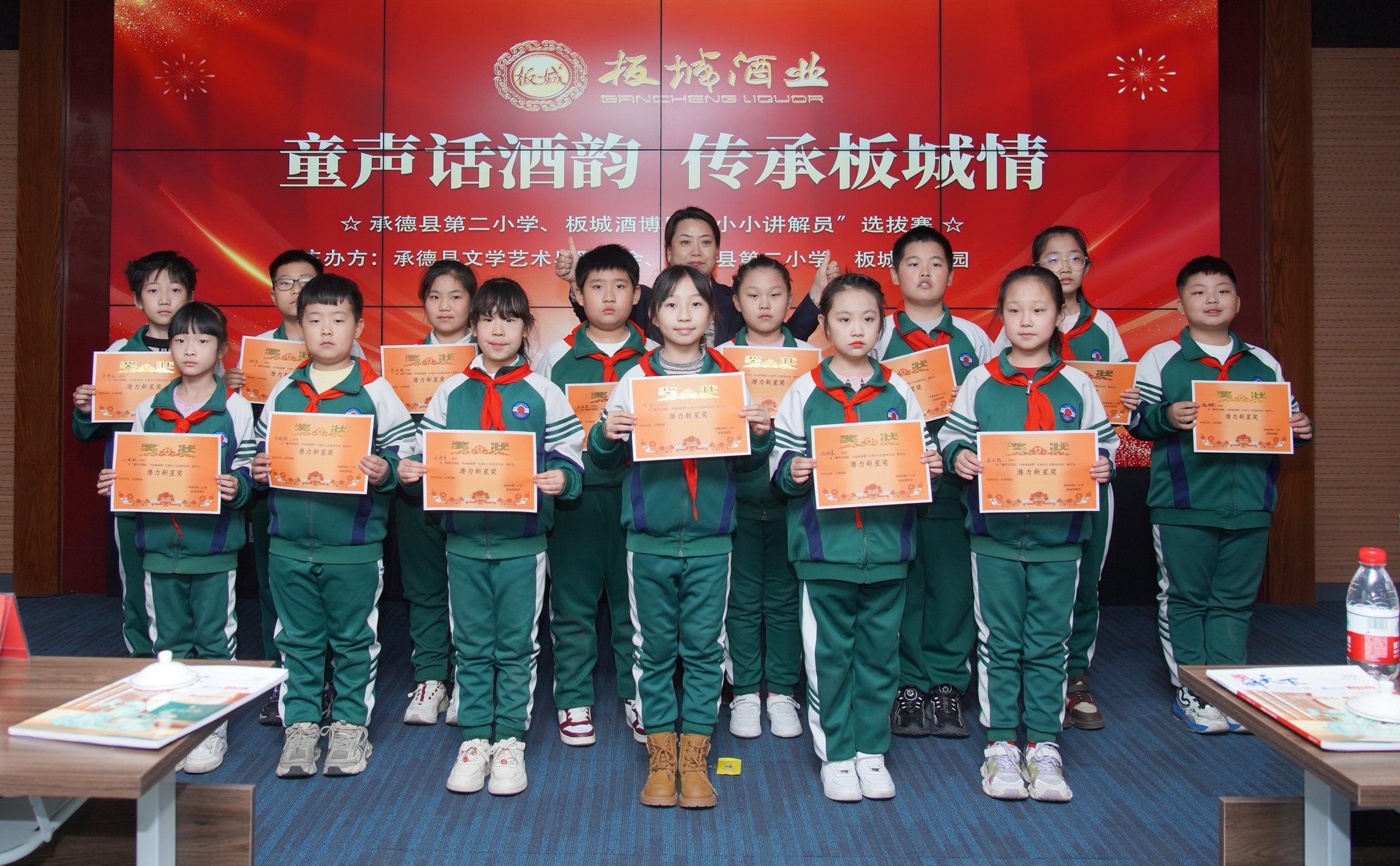 承德縣文學(xué)藝術(shù)界聯(lián)合會(huì)主席崔海軍、承德縣第二小學(xué)副校長(zhǎng)曲艷頗、承德縣第二小學(xué)副校長(zhǎng)尹曉娟、承德縣第二小學(xué)少先隊(duì)輔導(dǎo)員郭莉文、板城酒業(yè)行政總監(jiān)郝華杰、板城酒業(yè)行政部主管蘇恬靜出席活動(dòng)。