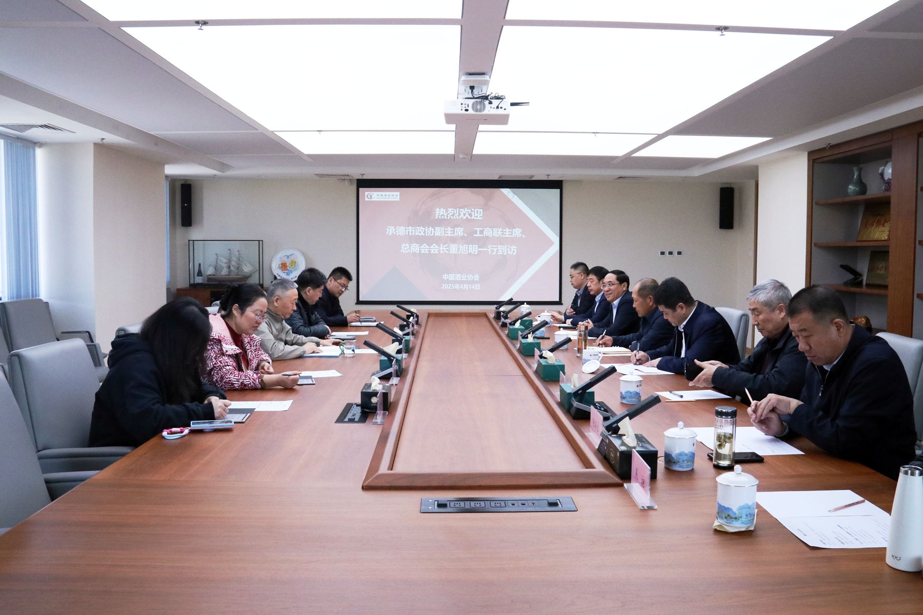 4月14日,承德市政協(xié)副主席、工商聯(lián)主席、總商會會長董旭明,承德市發(fā)改委副主任朱興允,承德市酒業(yè)協(xié)會理事長劉磊斌,秘書長陳建強(qiáng),河北板城酒業(yè)黨委書記、總經(jīng)理張春生,河北板城酒業(yè)總經(jīng)辦主任吳迪及承德酒業(yè)同仁一同走進(jìn)中國酒業(yè)協(xié)會,雙方就地產(chǎn)酒發(fā)展、產(chǎn)區(qū)建設(shè)、品質(zhì)表達(dá)、文化價(jià)值等方面進(jìn)行了座談交流。