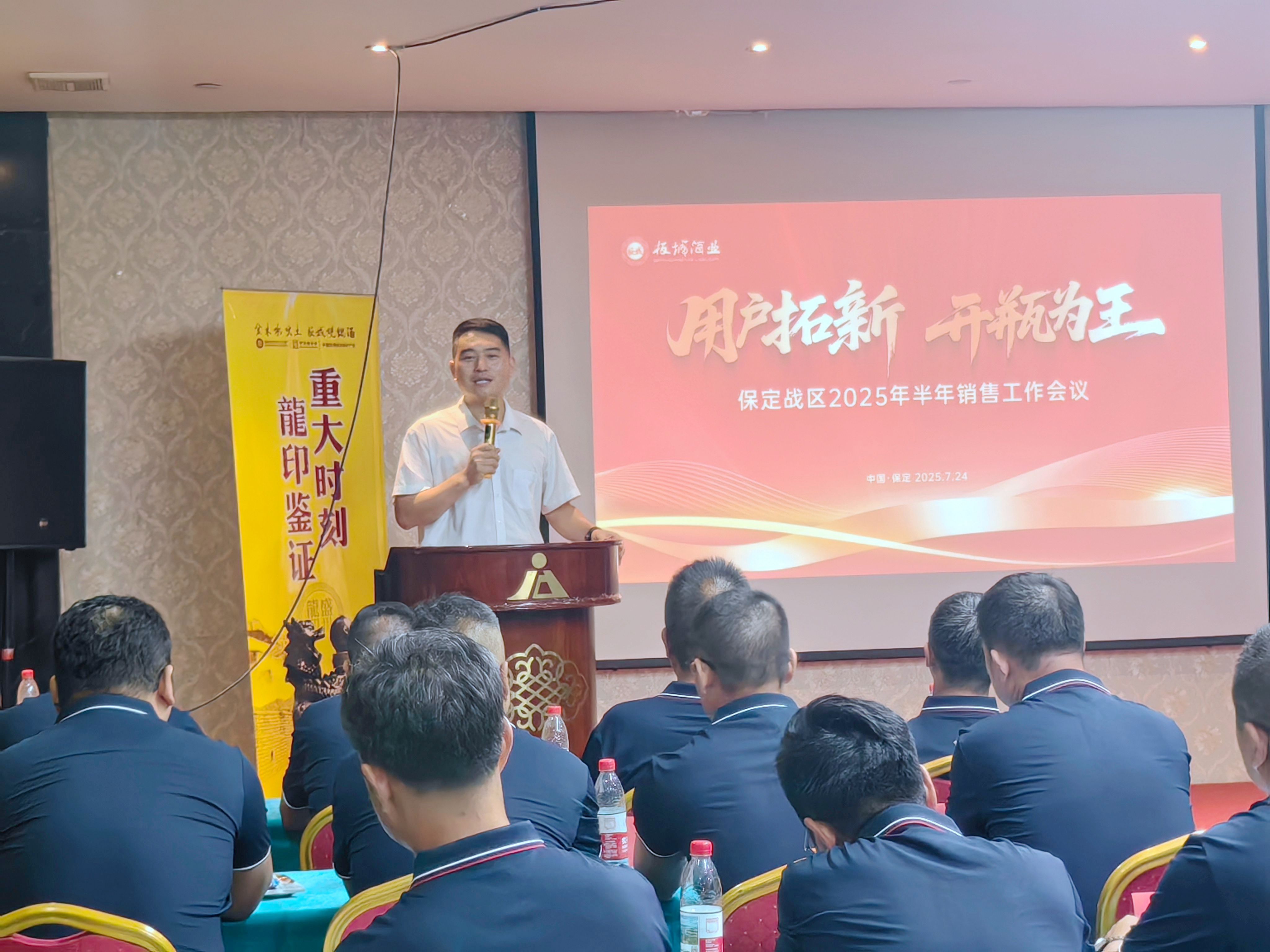 板城酒業(yè)銷售常務(wù)副總經(jīng)理許樹鋼,保定戰(zhàn)區(qū)經(jīng)理賈亞飛,業(yè)務(wù)經(jīng)理、業(yè)務(wù)團(tuán)隊(duì)及經(jīng)銷商、團(tuán)購商齊聚一堂,共商發(fā)展大計(jì),吹響2025年下半年度的沖鋒號角。