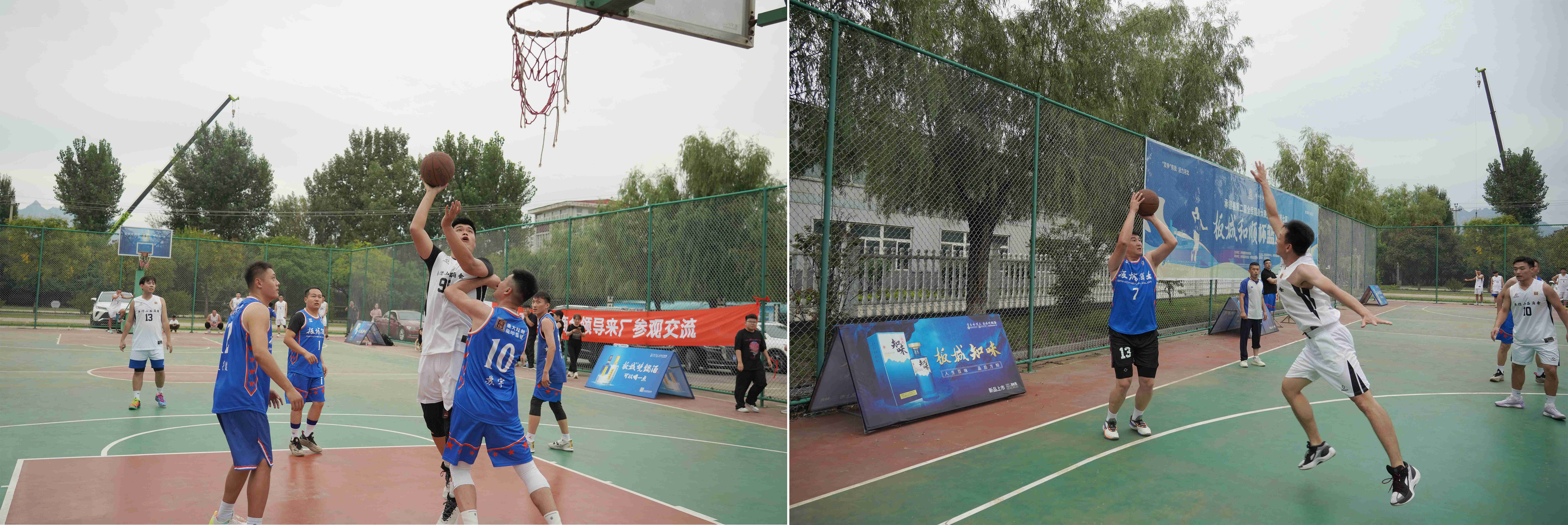 參觀體驗(yàn)結(jié)束后,一場精彩激烈的籃球友誼賽在板城酒業(yè)籃球場拉開帷幕。雙方隊(duì)員精神抖擻,斗志昂揚(yáng),在賽場上盡情揮灑汗水。巧妙的傳球、精準(zhǔn)的投籃、默契的配合,贏得場下觀眾陣陣掌聲。